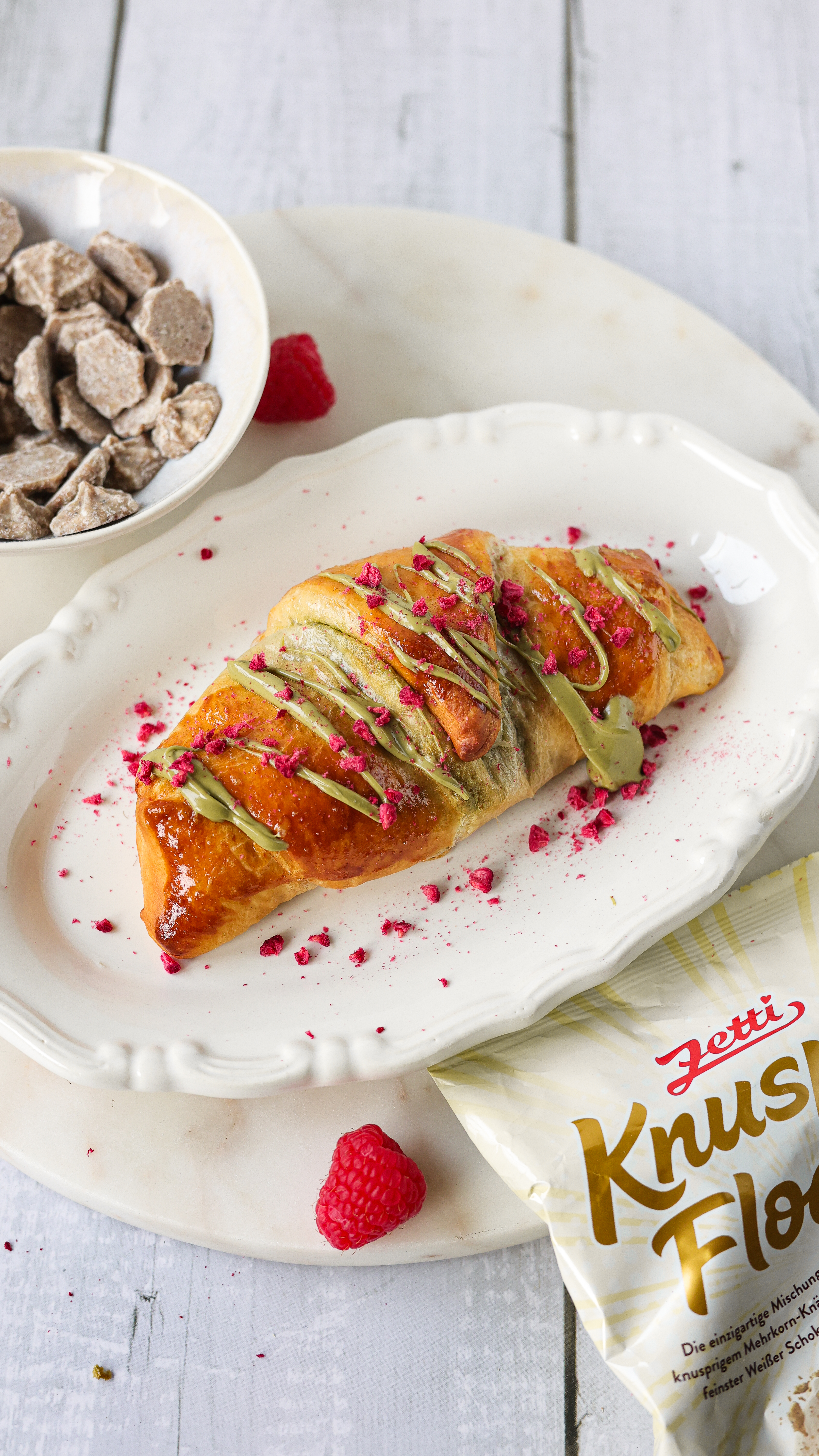 Ich habe euch heute ein ganz besonderes Pistazien Croissant mitgebracht. 🥐 Mein Croissant ist neben der Pistaziencreme mit frischen Himbeeren und den köstlichen weißen Knusperflocken gefüllt! Eine traumhaft gute Kombination.